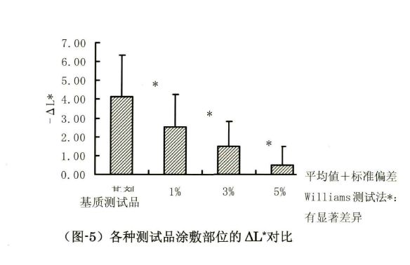 最后对比不同浓度的4-MSK乳霜涂抹部位,得出照射前后的肤色变化量(ΔL*)结果如下: