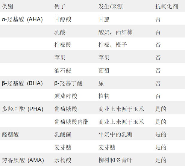 大多数PHA和仿生酸都具有抗氧化活性,但在AHA中可以找到一些例外——尤其是那些具有至少两个-COOH基团的物质。葡萄糖酸内酯、乳糖酸和麦芽糖酸可抑制氧化反应。